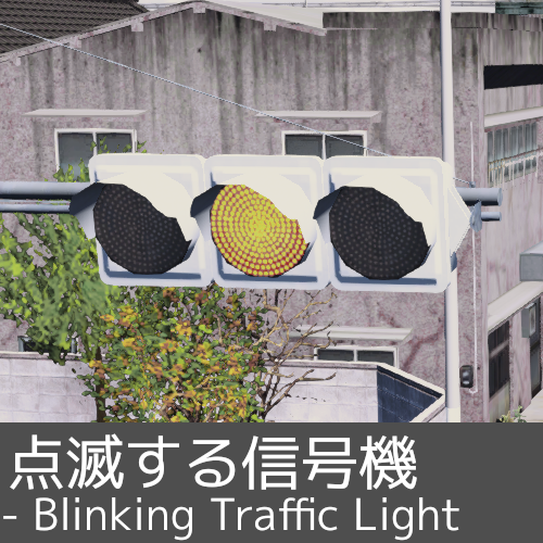 押しボタン式信号で見られる、3灯の点滅式信号機です。これも仕様の項にて実際に流したスクリプトを公開しておきます。