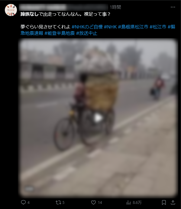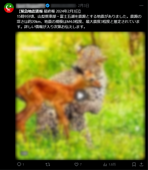 一周回って大好き。極めて古典的なアラブ系インプレゾンビ。おそらく文面的にNerv防災の文章をパクったのかな?動画や画像を追加すると画面占有率が高くなり、ツイートで画面を止める、立ち止まりやすくなってインプレッションがリーチしやすくなる他、動画が添付されたポスト、Proに課金したユーザーからのポストを優先して表示するXのアルゴリズムに配慮した、SEOに富んだポスト。1.9万インプレッション。さほどインプレが稼げていないのが可愛い。