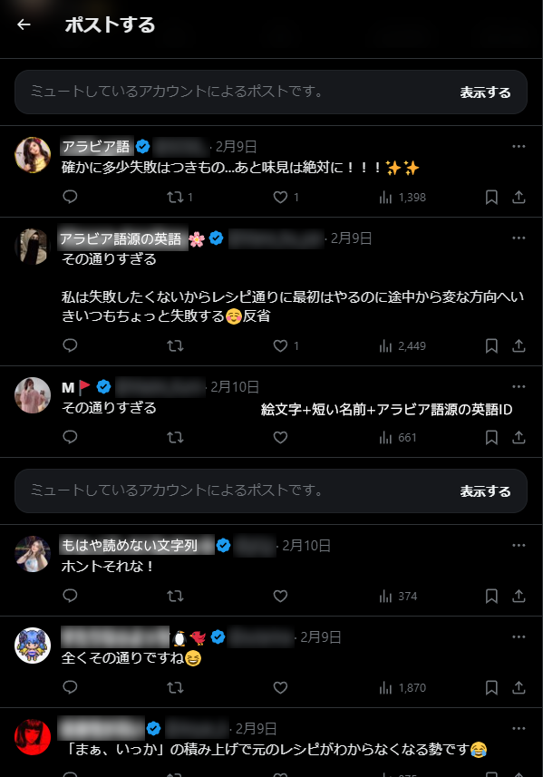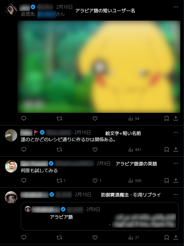 プロフィール欄の日本語が怪レいな、短いなと感づいて、ポストを眺めに行くとゴリゴリにアラビア語や英語を使うゾンビもいます。人間に防御魔法を打たれないよう、感知されにくく進化しています。