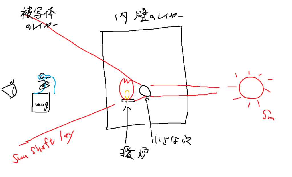 そして逆光特有の光陰を生み出すSun Shaftは、名前の通り太陽のみの光陰であること、つまり他の光源には適用されないことを私はよく知っていました。