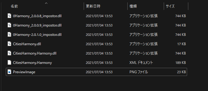 我々がよく目にするシティーズのMODの拡張子は「.dll」であることがほとんどです。