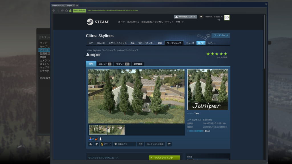 Workshopを押すと、cities.exe内の謎のブラウザで開く形になるし、結構ラグいしで。